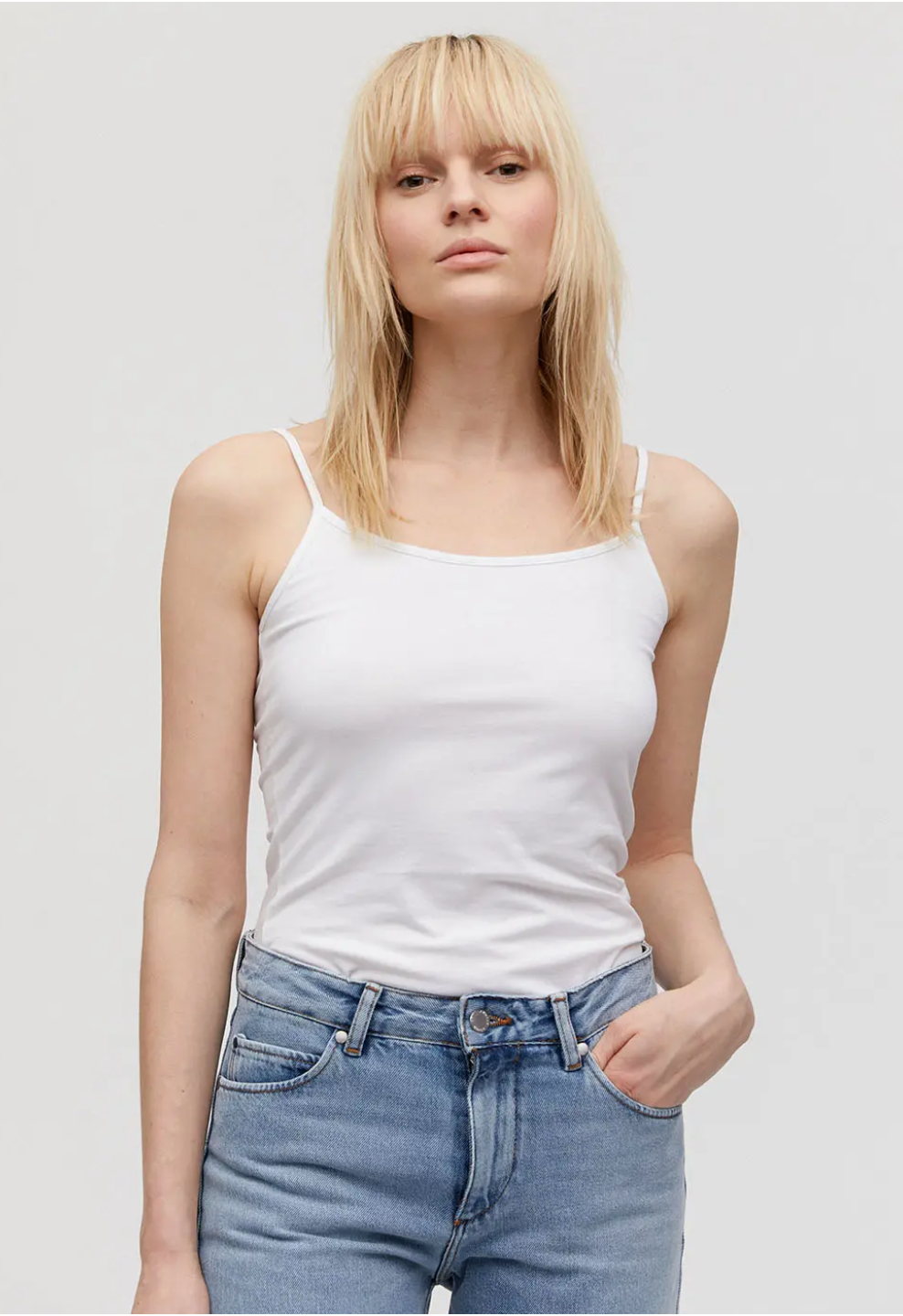 Elegant hemdje met verstelbare spaghettibandjes. Een ideaal exemplaar om keer op keer uit je kast te trekken.