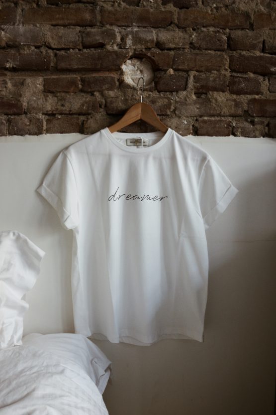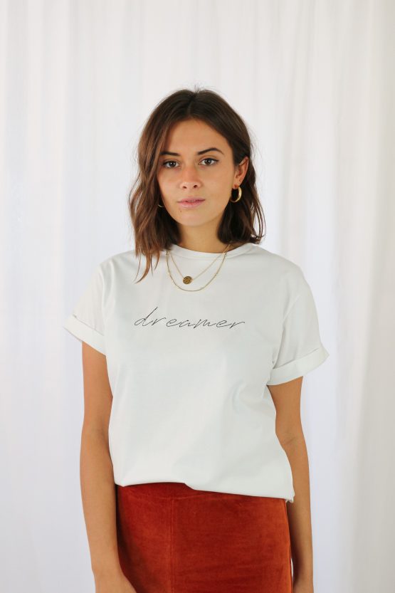 Met dit duurzame shirt van biologisch katoen maak je een echt statement! Het shirt is gemaakt met de juiste ethics en is gemaakt van een fijnere dikke soort katoen. Zo kun je er extra lang van genieten. Stijl deze met je favoriete sieraden, een blazer of een biker jacket.