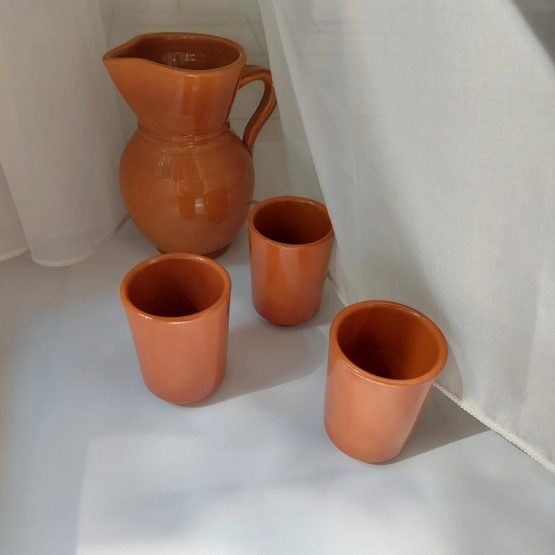 Vintage kannetje met mokken van keramiek