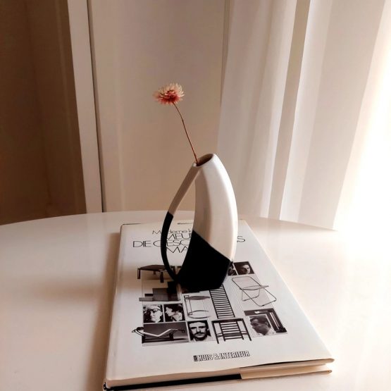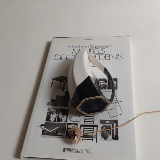 Uniek vintage vaasje in abstracte vorm. Stijlvol uitgevoerd in zwart-wit.